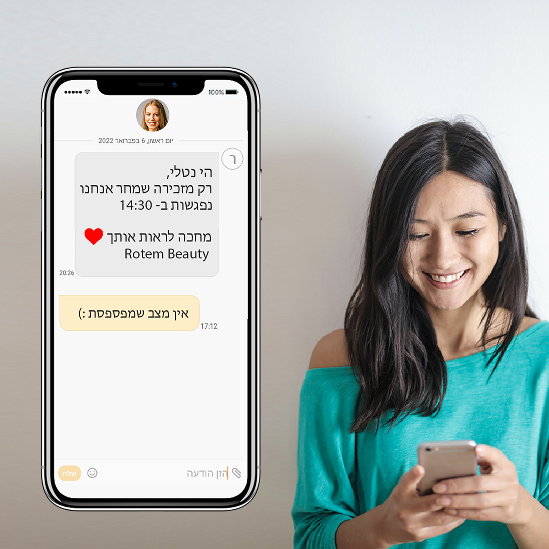 ליסטה שולחת ללקוחות שלך הודעות אוטומטיות בכל קביעה או שינוי של תור, וגם תזכורות אישיות יום לפני הפגישה כדי לוודא שכולן מגיעות. עוזרת אישית, כבר אמרנו?